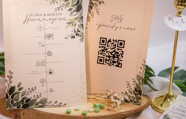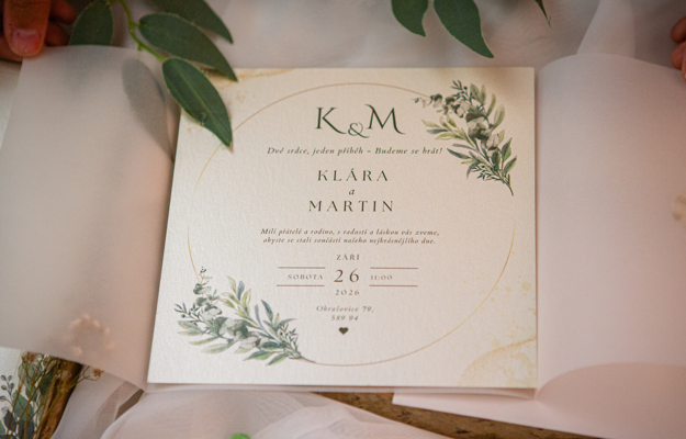 Svatební oznámení je prvním dotekem vaší svatby s hosty – naznačuje styl, atmosféru i váš společný příběh. Precizní zpracování a kvalitní materiály zajistí, že se z obyčejné informace stane krásná vzpomínka.