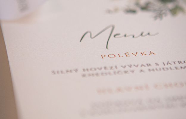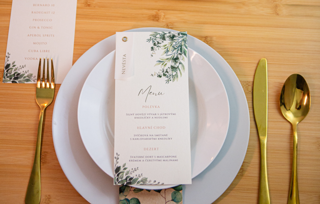 Svatební menu je krásným doplňkem slavnostní tabule a zároveň praktickým přehledem toho, na co se hosté mohou těšit.
