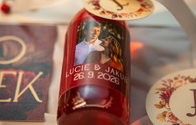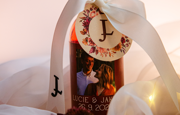 - možnost potisku iniciálů novomanželů, jmenovek svatebčanů nebo krátkého osobního vzkazu