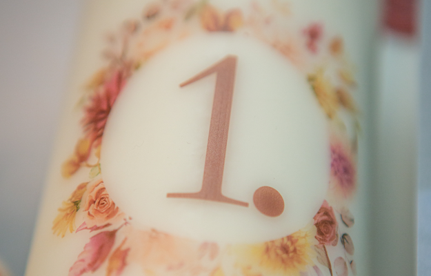 Čísla stolů pomáhají s organizací svatebních hostů a zároveň jsou výrazným dekoračním prvkem tabule.